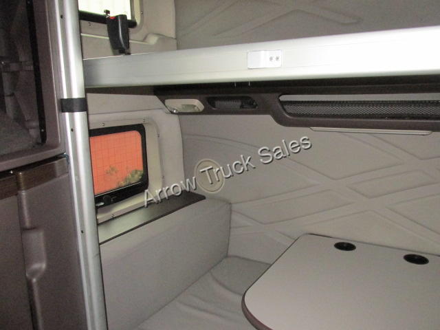I can't wait for this truck to get here... I'm not alone.This living room on wheels has the signature 77 inchesof living space offering a 40" top bunk and a 42" bottomthat doubles as a diner style work station. Windows uptop and down below for maximum natural light. Ladder thatsafely gets you up to your loft and tons of space forstorage. Hard cabinet doors on both passenger side anddrivers. Dual air ride seats, comfortable dash set up anda 9 convertable to 13 speed. Whats powering this truck isa 450 horse Cummins ISX. Skirts , aluminum wheels and airslide 5th wrap this up...