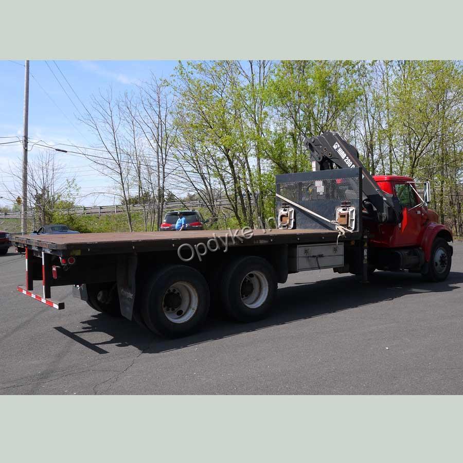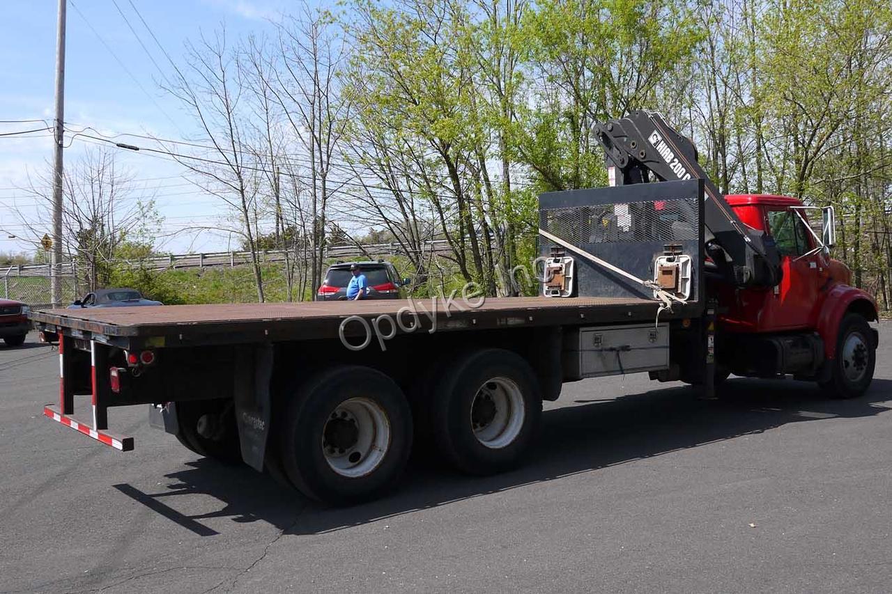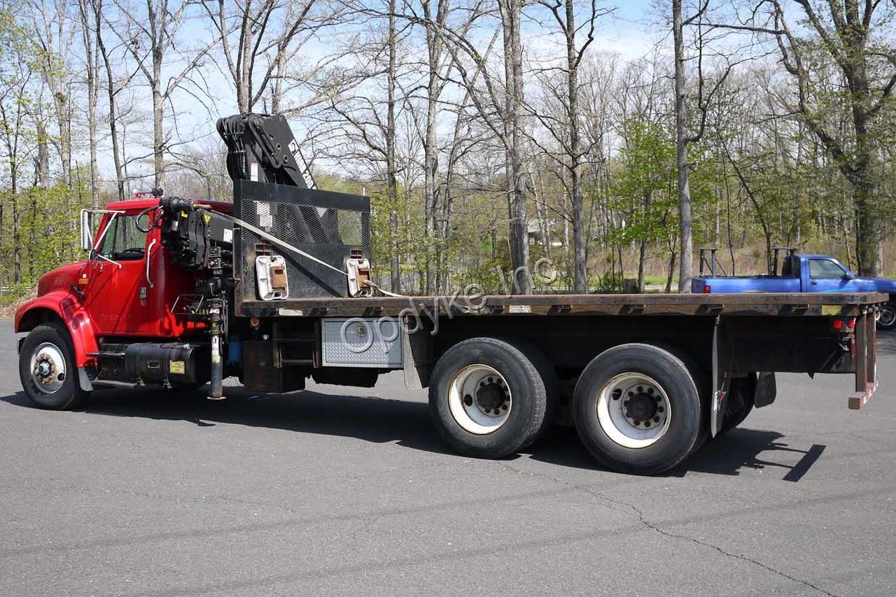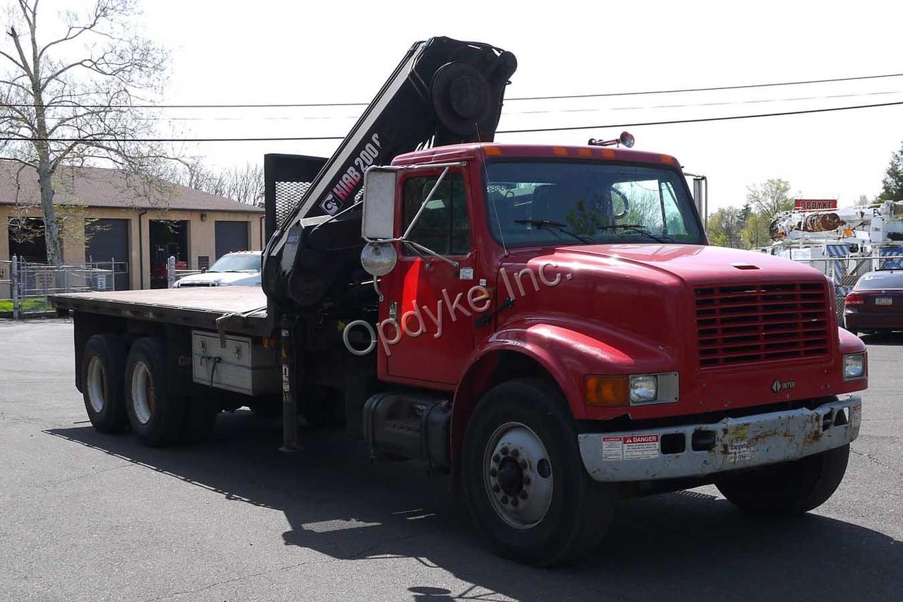 1999 HIAB 200-3 KNUCKLEBOOM; 7.5 TON; PICKS 15,430 LB AT 7'10'' SIDE REACH; PICKS 2,800 LB AT 38'8'' MAX SIDE REACH; 4 HYD EXT ON OUTER BOOM; RADIO REMOTE CONTROLS; HYD ROTATOR ON OUTER BOOM TIP; 2 HYD OUT + DOWN OUTRIGGERS; 18'6'' STEEL FLATBED.