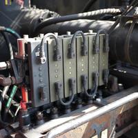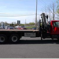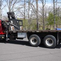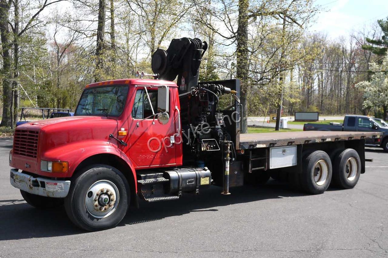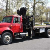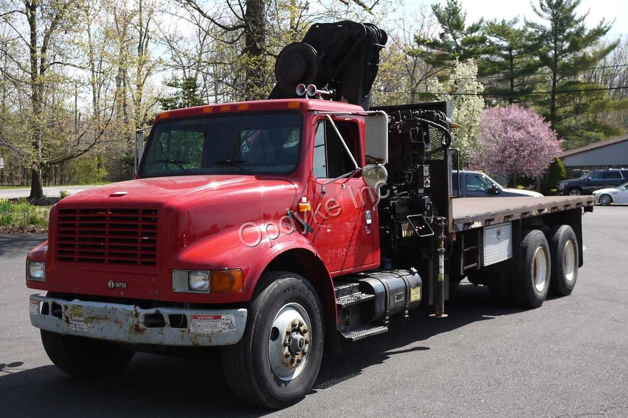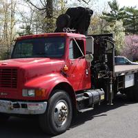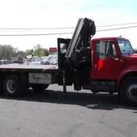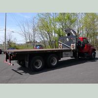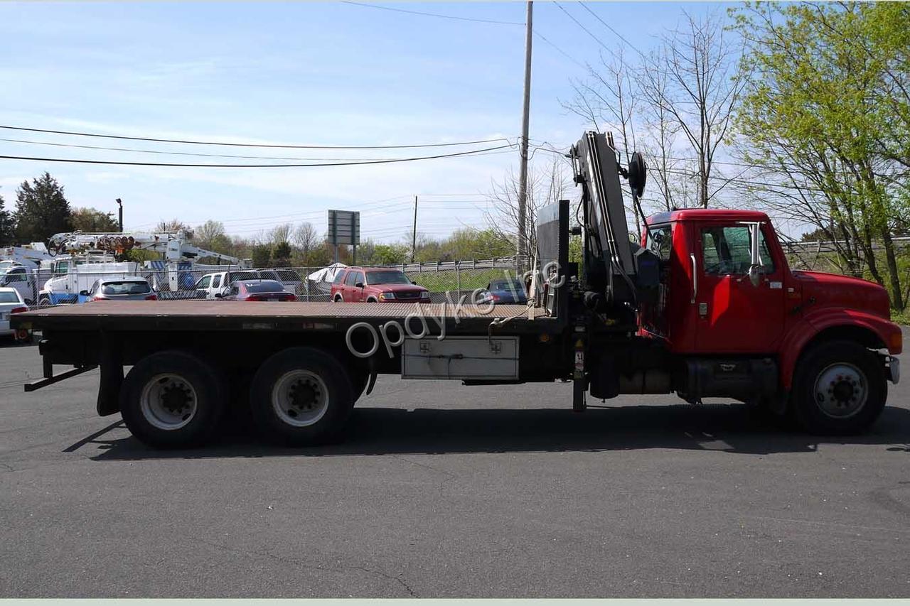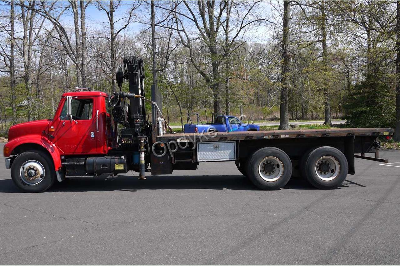 1999 HIAB 200-3 KNUCKLEBOOM; 7.5 TON; PICKS 15,430 LB AT 7'10'' SIDE REACH; PICKS 2,800 LB AT 38'8'' MAX SIDE REACH; 4 HYD EXT ON OUTER BOOM; RADIO REMOTE CONTROLS; HYD ROTATOR ON OUTER BOOM TIP; 2 HYD OUT + DOWN OUTRIGGERS; 18'6'' STEEL FLATBED.