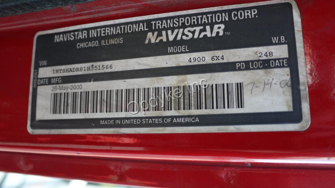 2001 INTERNATIONAL 4900; DT530 6 CYL DIESEL (275 HP); FULLER 9 SP; TANDEM AXLE; POWER STEERING; AIR BRAKES; AIR CONDITIONING; TIRES: 315/80R22.5 FRONT, 11R22.5 REAR; 58K GVW (18K FRONT, 40K REAR).