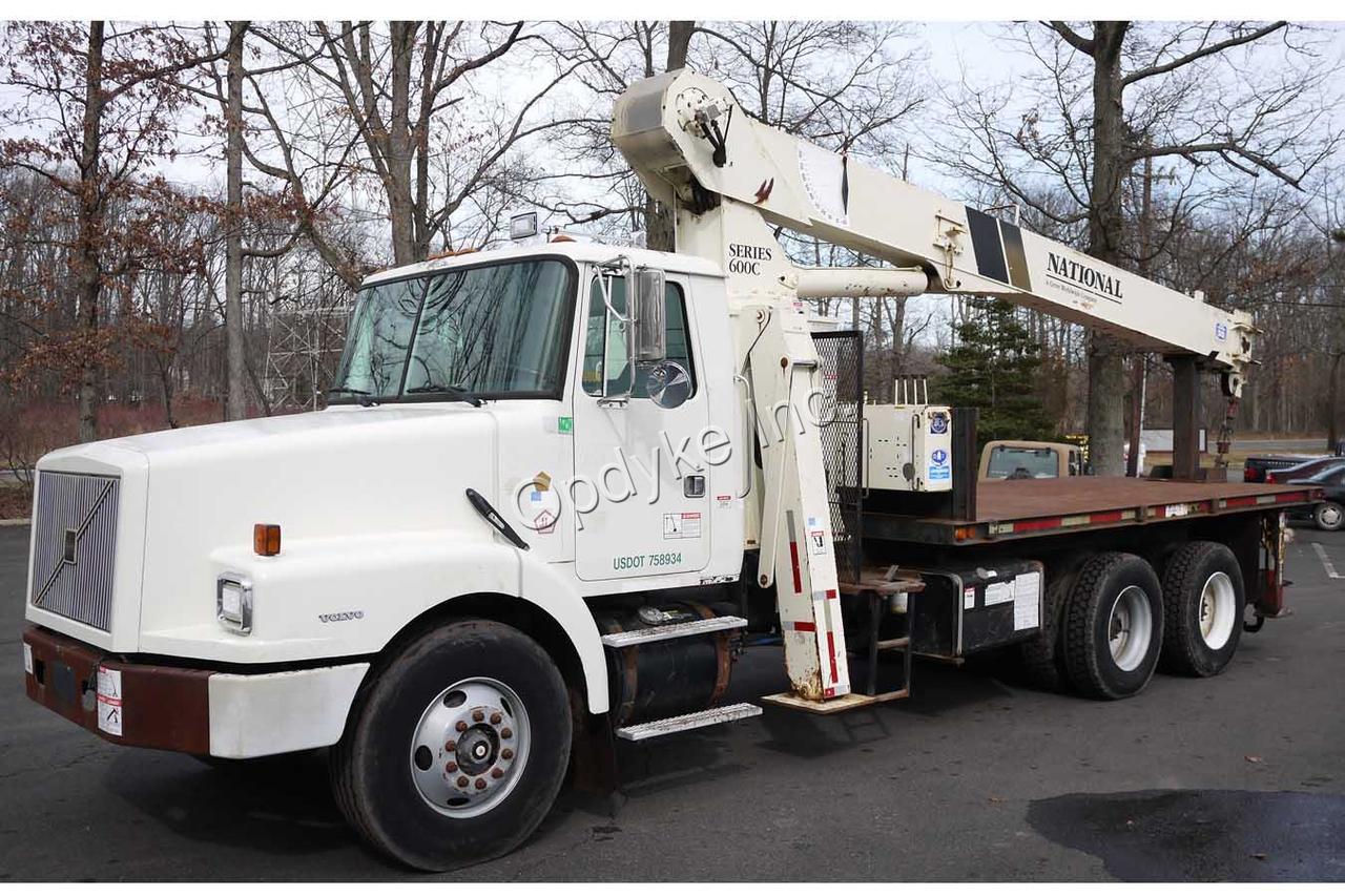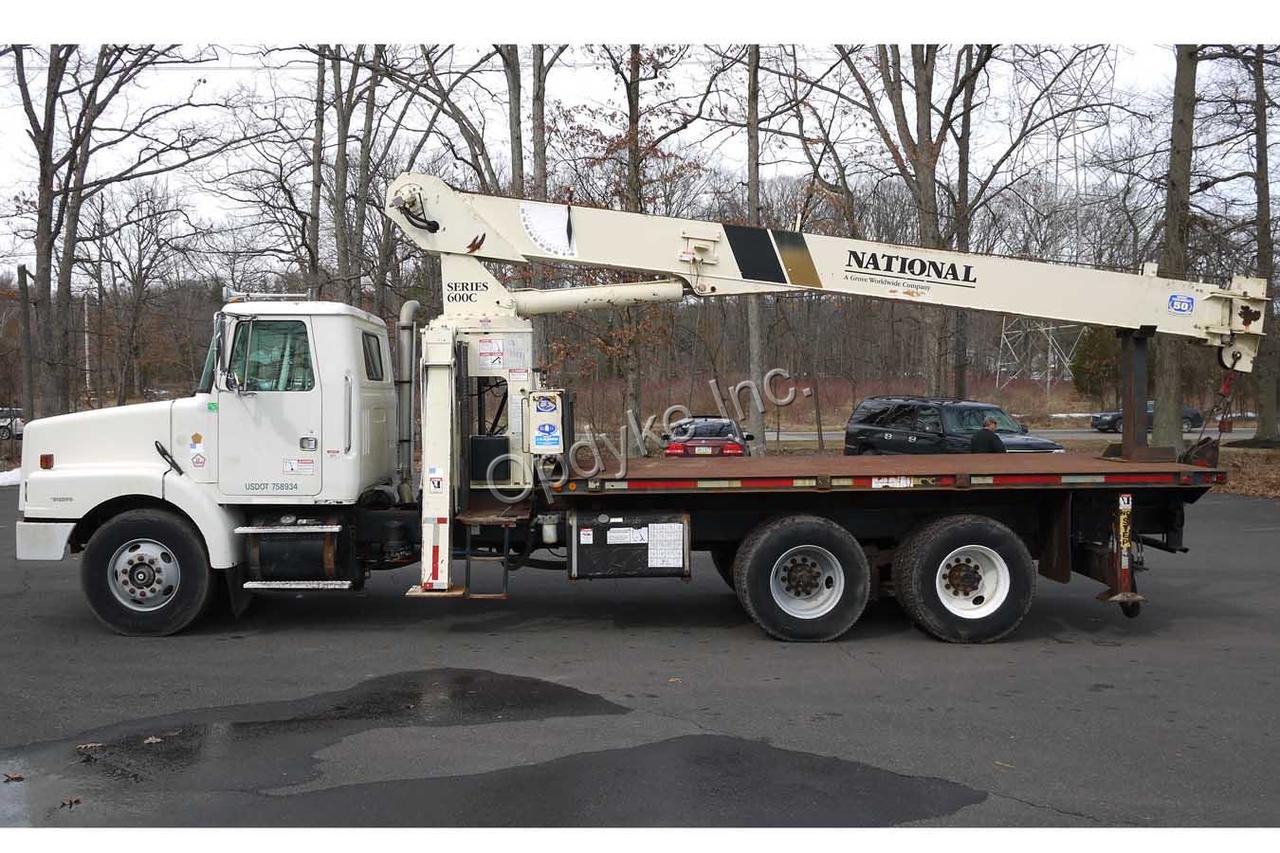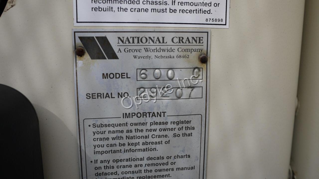 NATIONAL CRANE 600C; 17 TON; 115' TOTAL HOOK HEIGHT; 4 SECTION HYD BOOM; 91' + 24' SWING AWAY JIB; CAPACITY ALERT / OVERLOAD SHUTDOWN; ANTI TWO-BLOCK; SINGLE SPEED WINCH; 4 OUTRIGGERS; 18' STEEL FLATBED.