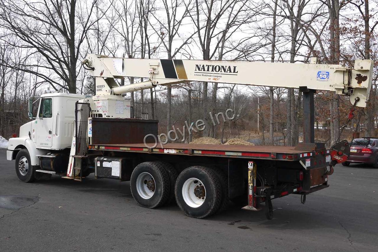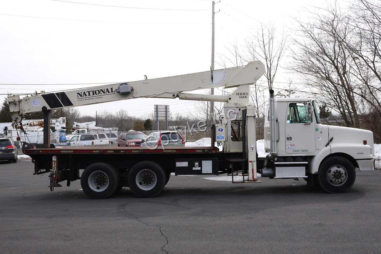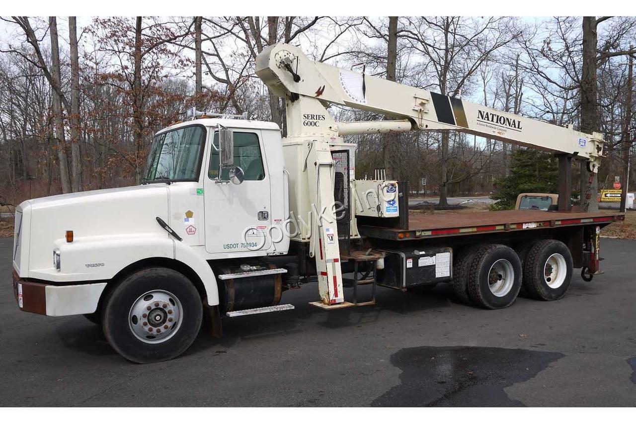 NATIONAL CRANE 600C; 17 TON; 115' TOTAL HOOK HEIGHT; 4 SECTION HYD BOOM; 91' + 24' SWING AWAY JIB; CAPACITY ALERT / OVERLOAD SHUTDOWN; ANTI TWO-BLOCK; SINGLE SPEED WINCH; 4 OUTRIGGERS; 18' STEEL FLATBED.