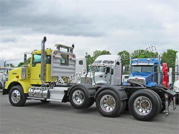 Heavy duty Kenworth T800W day cab now available! Features a 20,000lb. Non-Steerable Lift Axle, Full Locking Rears, Long 5th Wheel Slider, Aluminum Headache Rack, Dual Exhaust Stacks, (2) Stainless Air Cleaners, Stainless Sun Visor, Air Ride Cab, Stainless Power Mirrors, Power Passenger Window, Power Locks, Tilt Steering and AM/FM/CD.