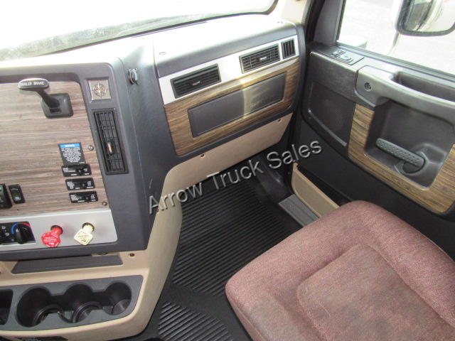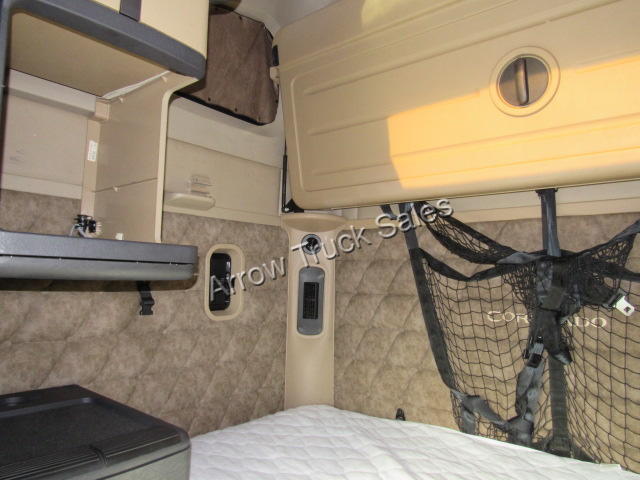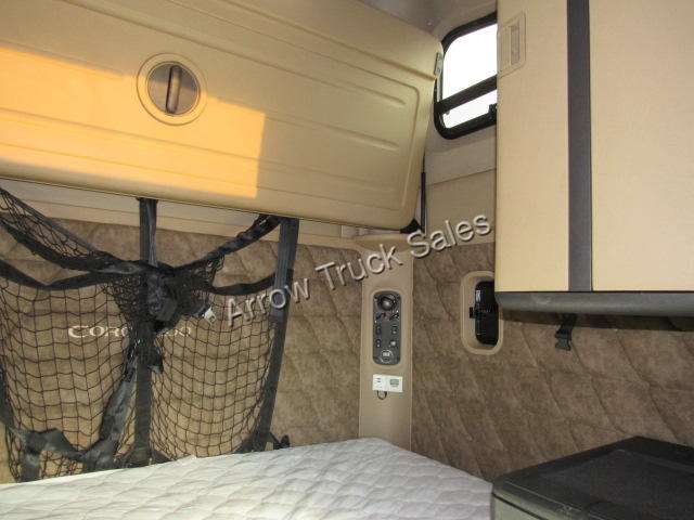 Long and tall, king of the road, top of the line Freightliner Coronado, black and chrome! Double bunk spacious condo with lots of storage and top of the line options, APU to power your fridge/TV/Internet/microwave that you install to make this your home away from home! APU means main engine was not idled night after night, giving you longer engine life and saving a lot on diesel. Hood mirrors to reduce blind spots, easy clean rubberized floor, dual plush air ride seats, fog free heated power mirrors, power locks and windows, suspension load gauge, diff locks and ATC to get out of snow/mud, hands free phone connectivity with Bluetooth/AUX/USB ports, trailer brake, king pin release in cab, suspension drop to get under low trailers without having to wind-up landing gear, free limited warranty