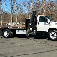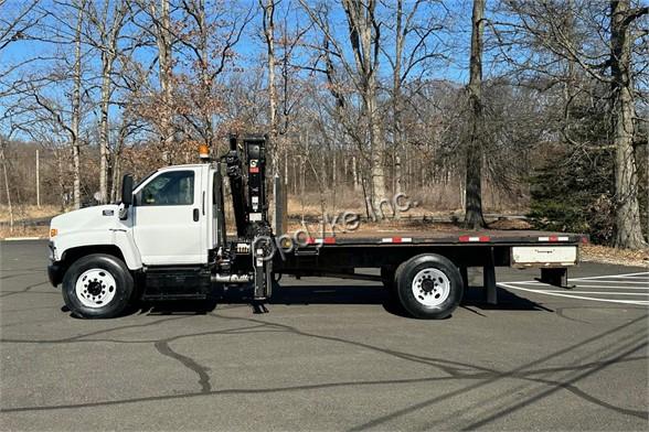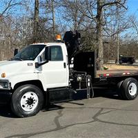 2003 GMC C/7500; CAT 3126 5 CYL DIESEL; 7 SP TRANS; POWER STEERING; POWER BRAKES; AIR CONDITIONING; TIRES: 11R22.5; 25,950 GVW (8K FRONT, 19K REAR). 2005 HIAB 099CL KNUCKLEBOOM; 3.5 TON; PICKS 6,830 LB AT 8'2'' SIDE REACH; PICKS 1,150 LB AT 39'4'' MAX SIDE REACH; 4 HYD EXT ON OUTER BOOM; 2 PULLOUT OUTRIGGERS; 16' STEEL FLATBED.