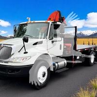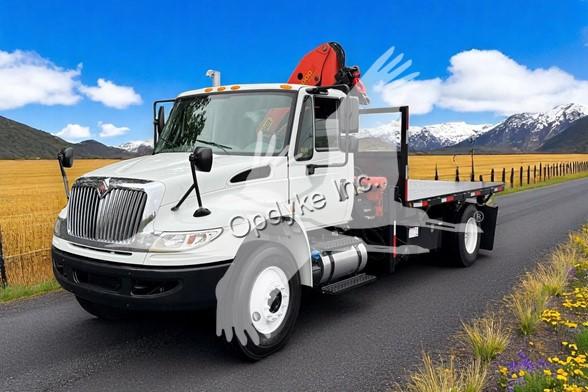 2015 INTERNATIONAL 4400, CUMMINS ISB 6 CYL DIESEL (250 HP), 6 SP AUTO, POWER STEERING, AIR BRAKES, AIR CONDITIONING, TIRES: 11R22.5, 33K GVW (12K FRONT, 23K REAR). 2014 PALFINGER PK12000A KNUCKLEBOOM: 7 TON, PICKS 14,730 LB AT 5'11'' SIDE REACH, PICKS 3,000 LB AT 26'7'' MAX SIDE REACH, 2 HYD EXT ON OUTER BOOM, OVERLOAD SYSTEM, 2 PULLOUT OUTRIGGERS, 14' STEEL FLATBED.