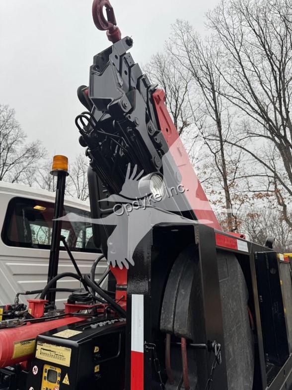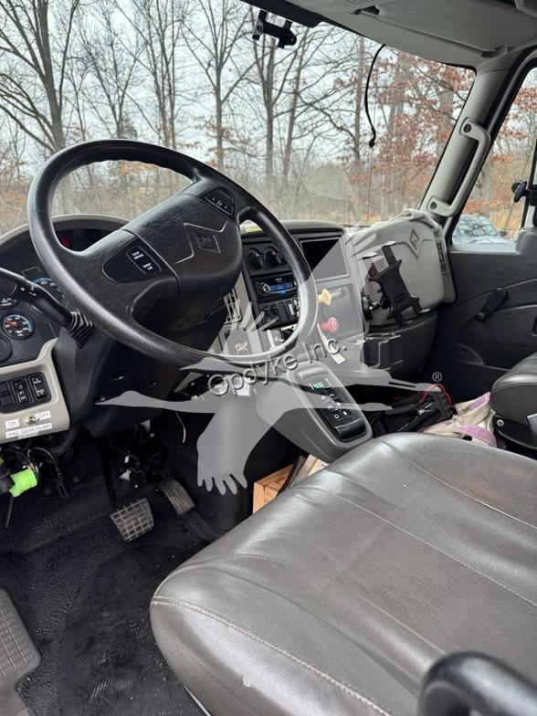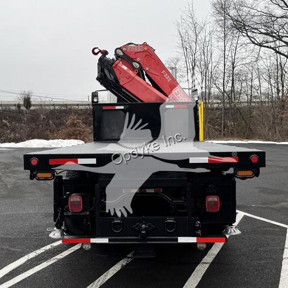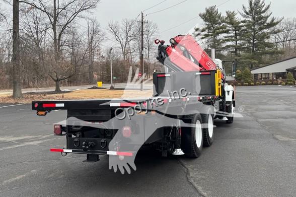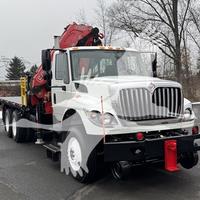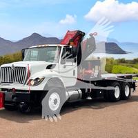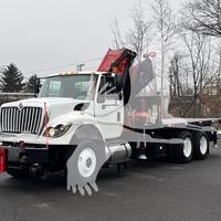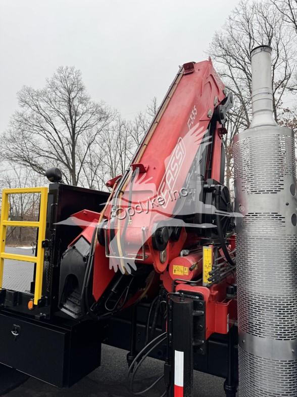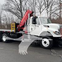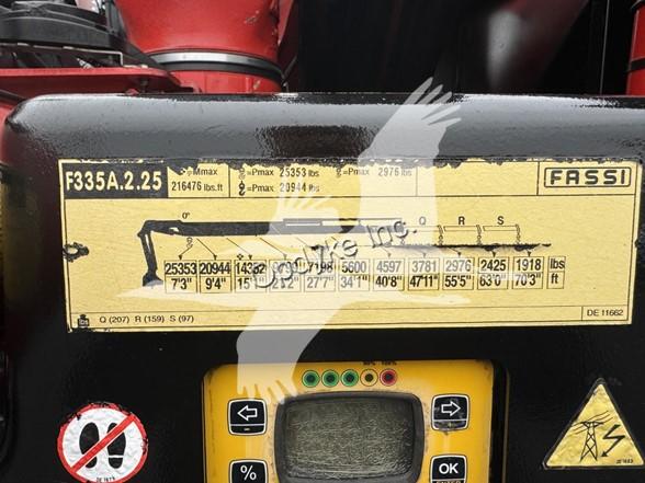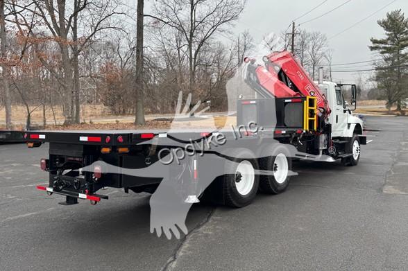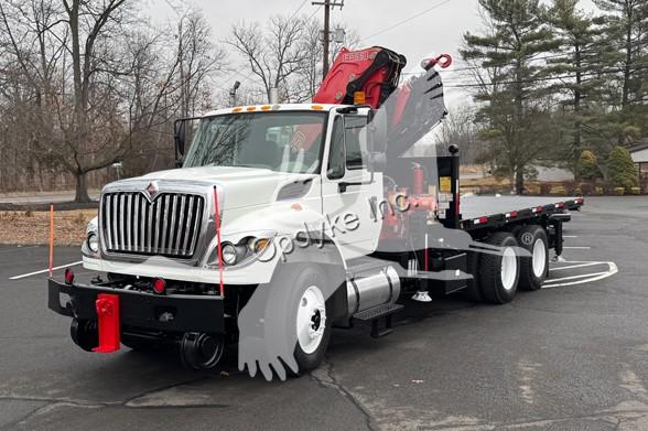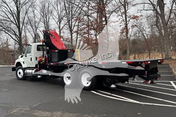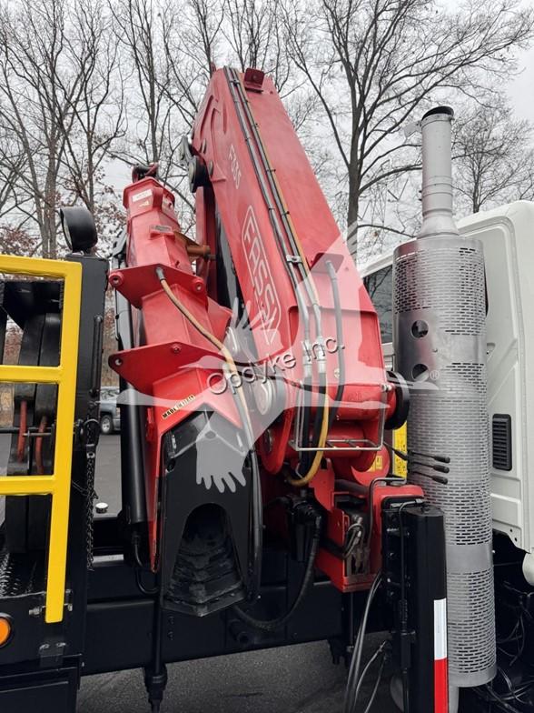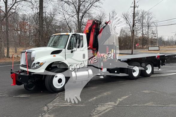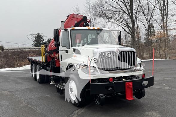 2014 INTERNATIONAL 7400, MAXFORCE 9-13 6 CYL DIESEL (315 HP), ALLISON 6 SP AUTOMATIC TRANSMISSION, TANDEM AXLE, POWER STEERING, AIR BRAKES, AIR CONDITIONING, TIRES: 11R24.5, 59,220 GVW (13,220 F, 46K R). 2014 FASSI KNUCKLEBOOM MODEL F335A.2.25, PICKS 25,353 LB AT 7'3'' SIDE REACH, PICKS 3,781 LB AT 47'11'' MAX SIDE REACH, 5 HYD EXT ON OUTER BOOM, LMI SYSTEM, RADIO REMOTE CONTROLS, 4 HYD OUT + DOWN OUTRIGGERS, RAIL GEAR SETUP, 20' STEEL FLATBED.