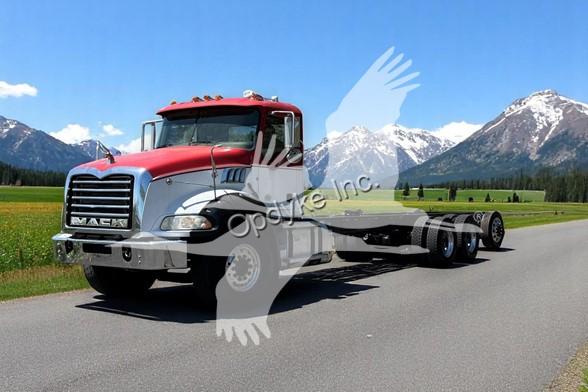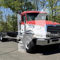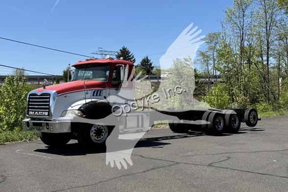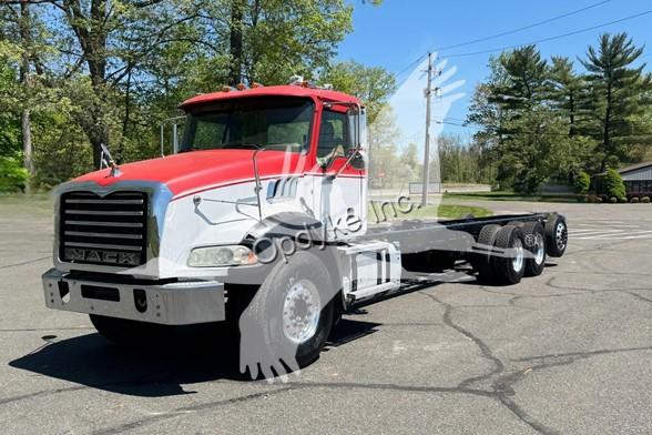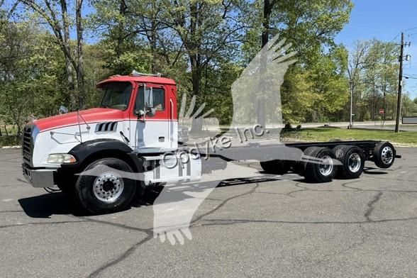 2012 MACK GU813, MACK MP7-395 6 CYL DIESEL (395 HP), MAXITORQUE 10 SP MANUAL TRANSMISSION, TANDEM AXLE, AIR TAG AXLE, POWER STEERING, AIR BRAKES, AIR CONDITIONING, TIRES: 425/65R22.5 FRONT, 11R22.5 REAR, 255/70R22.5 TAG, ALUMINUM WHEELS, 79.5K GVW (20K F, 46K R, 13.5K TAG). CAB & CHASSIS.