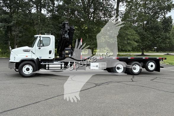 2014 FREIGHTLINER 114SD, DETROIT DD13 6 CYL DIESEL (410 HP), ALLISON 6 SP AUTOMATIC TRANSMISSION, TANDEM AXLE, AIR TAG AXLE, AIR RIDE SUSPENSION, POWER STEERING, AIR BRAKES, AIR CONDITIONING, POWER WINDOWS/MIRRORS/LOCKS, TIRES: 425/65R22.5 F, 11R22.5 R, 255/70R22.5 TAG, 66K GVW (20K F, 46K R, 11,020 TAG). HIAB 322E-5 HIPRO KNUCKLEBOOM, PICKS 1,490 LB AT 64'5'' MAX SIDE REACH, 72' MAX VERTICAL REACH, 5 HYD EXT ON OUTER BOOM + FLY JIB W/ 2 HYD EXT, LMI SYSTEM, RADIO REMOTE CONTROLS, 2 HYD OUT + DOWN OUTRIGGERS, 22'6'' STEEL FLATBED.