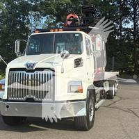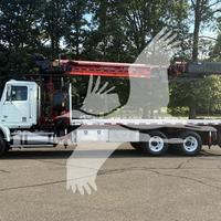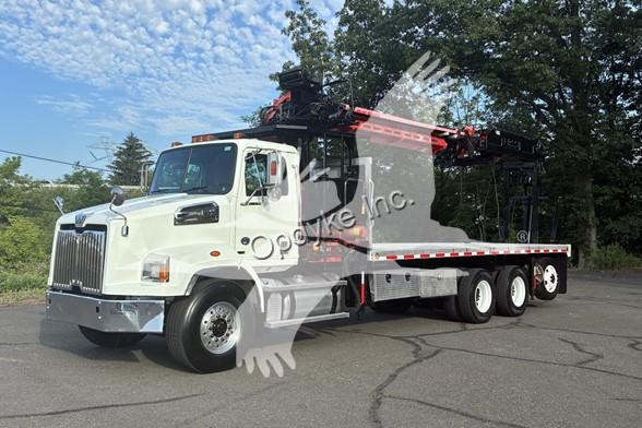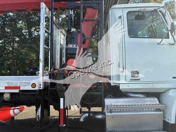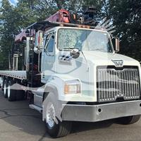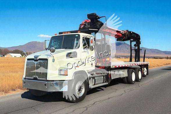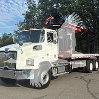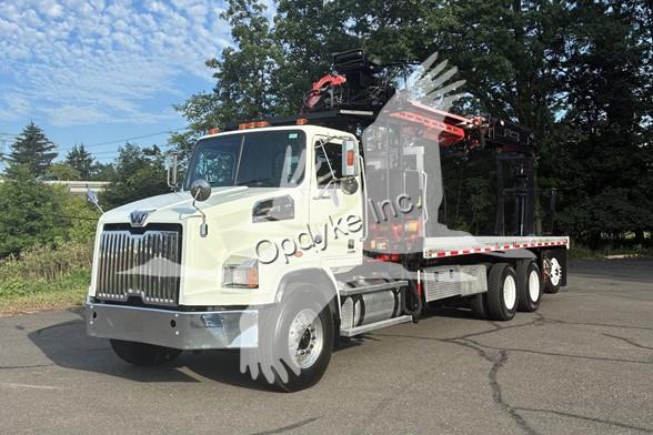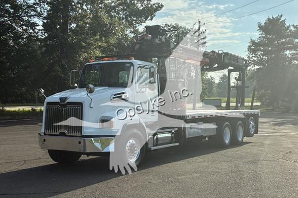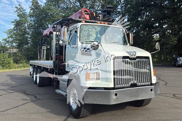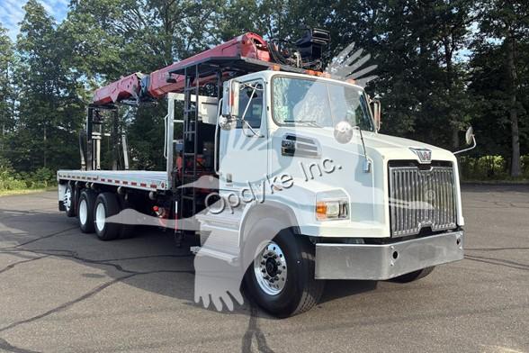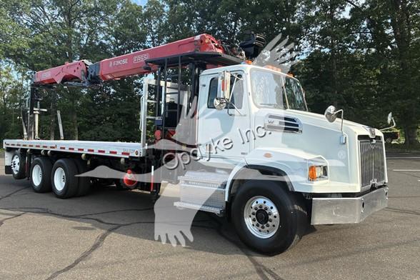 2014 WESTERN STAR 4700SB, DETROIT DD13 6 CYL DIESEL, 6 SP AUTOMATIC TRANSMISSION, TANDEM AXLE, AIR TAG AXLE, POWER STEERING, AIR BRAKES, AIR CONDITIONING, TIRES: 425/65R22.5 F, 11R22.5 R, 275/70R22.5 TAG. 2013 FASSI F390SE24 WALLBOARD LOADER KNUCKLEBOOM 3.75 TON, PICKS 7500 LB AT 27'3'' SIDE REACH, PICKS 1520 LB AT 73'1'' MAX SIDE REACH, 90' MAX VERTICAL REACH, 2 HYD EXT ON MAIN BOOM + 4 HYD EXT ON OUTER BOOM, LMI SYSTEM, RADIO + TOP SEAT CONTROLS, 44X84'' FORKS W/ CONT ROTATOR, 4 HYD OUT + DOWN OUTRIGGERS, 24'6'' ALUMINUM FLATBED.