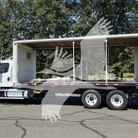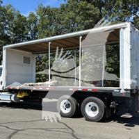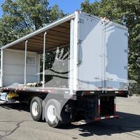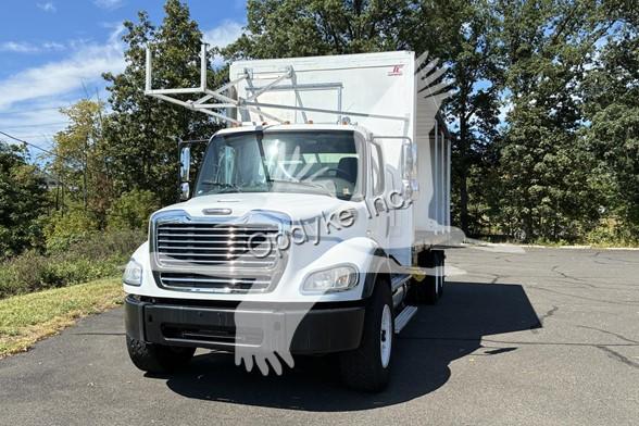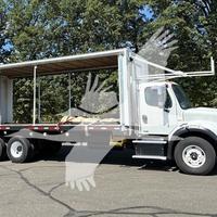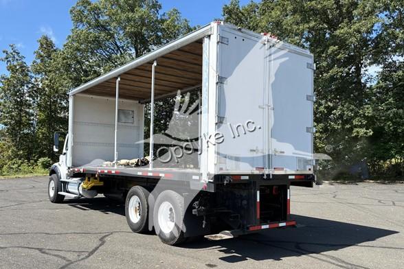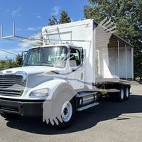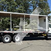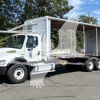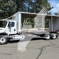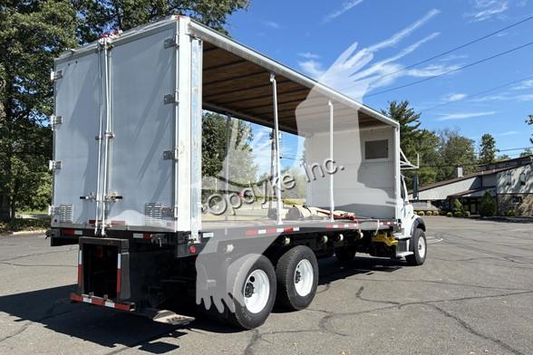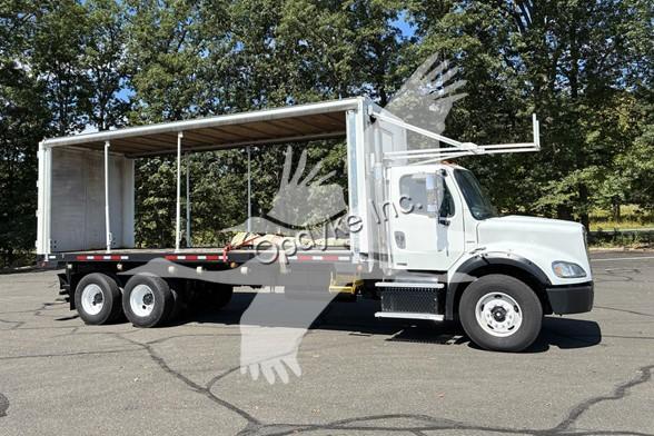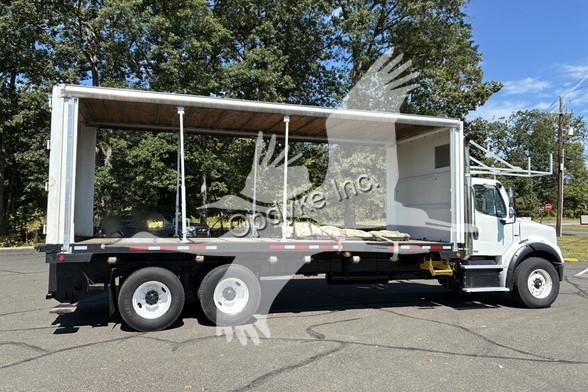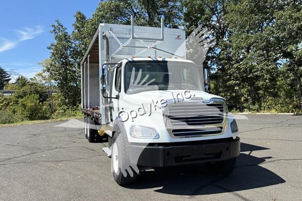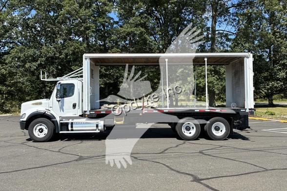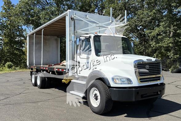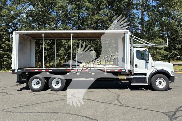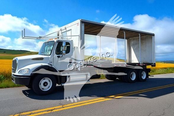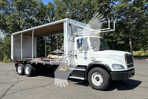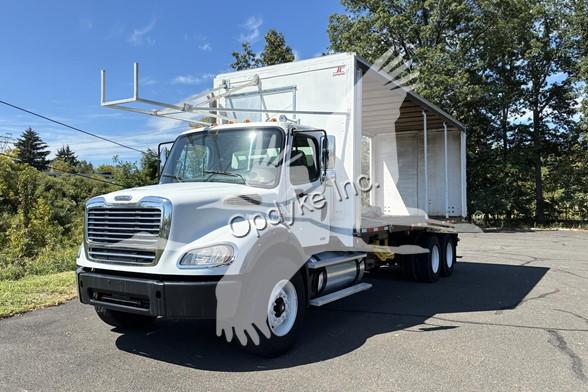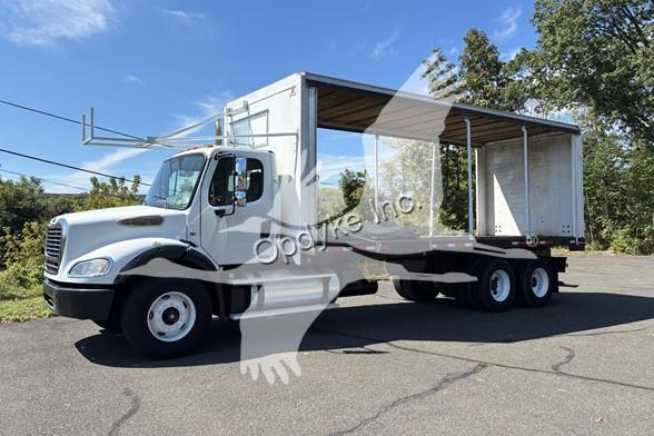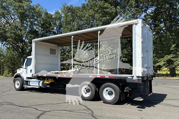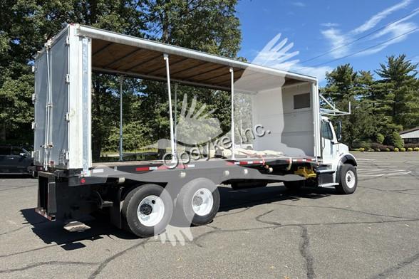2011 FREIGHTLINER M2-112, DETROIT DD13 6 CYL DIESEL, FULLER 10 SP MANUAL TRANSMISSION, TANDEM AXLE, AIR RIDE SUSPENSION, POWER STEERING, AIR BRAKES; AIR CONDITIONING; TIRES: 385/65R22.5 FRONT, 11R22.5 REAR; 58,740 GVW (18,740 LB FRONT, 40K REAR). 24' VAN BODY W/ CURTAIN SIDES, WOOD FLOOR.