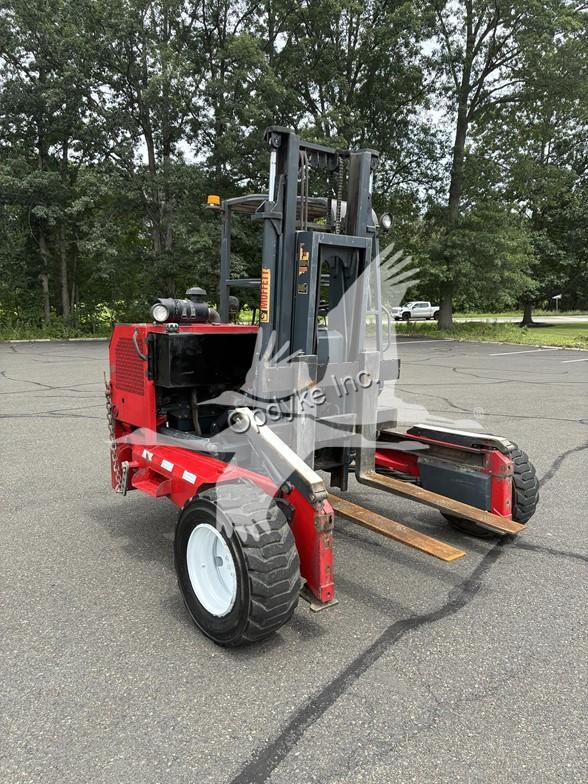 2006 MOFFETT M5500P.50 PIGGYBACK FORKLIFT: 2.75 TON, 5500 LB MAX CAP, 45'' FORKS W/ 45'' SPREAD, 10' LIFT HEIGHT, 78'' FORK TELESCOPE W/ PANTOGRAPH, 4'' SIDE SHIFT, KUBOTA 4 CYL DIESEL ENG, 3 WHEEL HYDROSTATIC DRIVE, TIRES: 31X15.50-15. 1,982 HOURS.