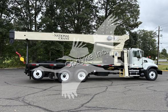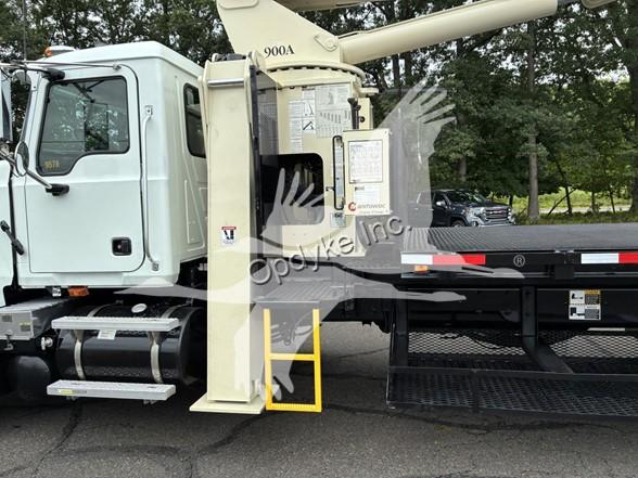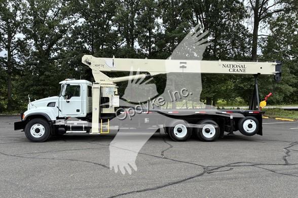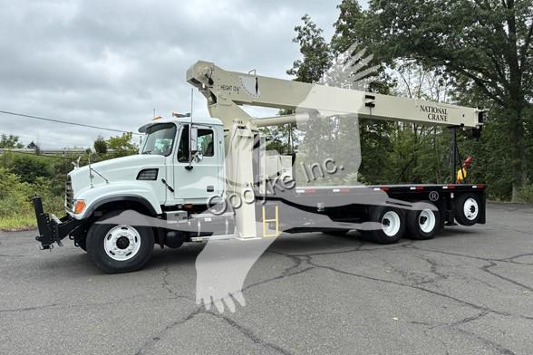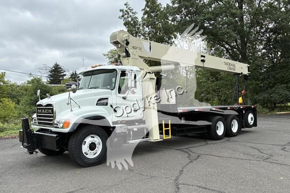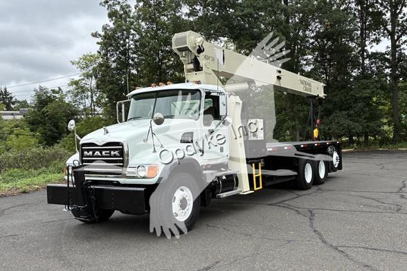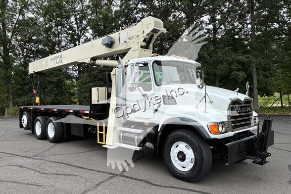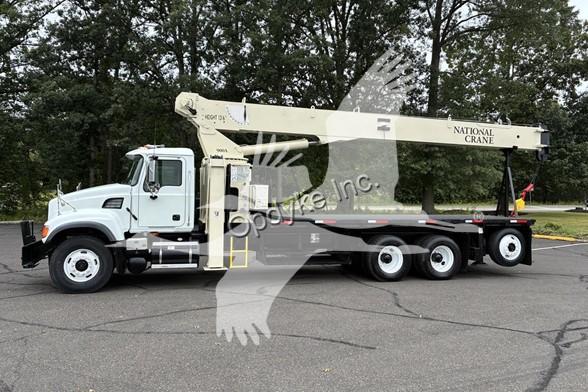 2006 MACK CV713, A1-400 6 CYL DIESEL (400 HP), 8LL MANUAL TRANSMISSION, TANDEM AXLE, AIR TAG AXLE, POWER STEERING, AIR BRAKES, AIR CONDITIONING, TIRES: 315/80R22.5 F, 11R22.5 R, 255/70R22.5 TAG, 79.5K GVW (20K F, 46K R, 13.5K TAG). NATIONAL CRANE MODEL 900A: 26 TON, 113' HOOK HEIGHT, 4 SECTION MAIN BOOM, LMI SYSTEM, ANTI TWO BLOCK, 2 SP WINCH, OVERHAUL BALL, 4 OUTRIGGERS + FRONT STABILIZER, 21'6'' STEEL FLATBED.