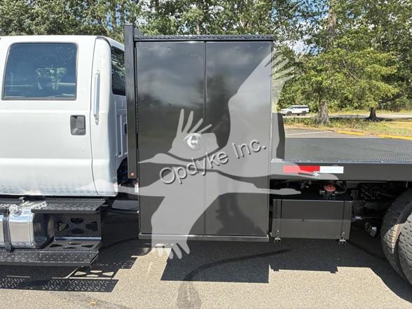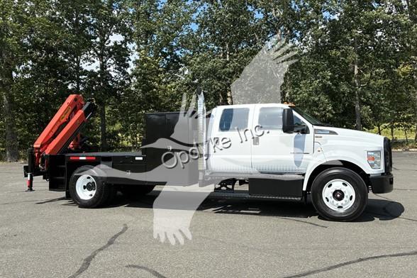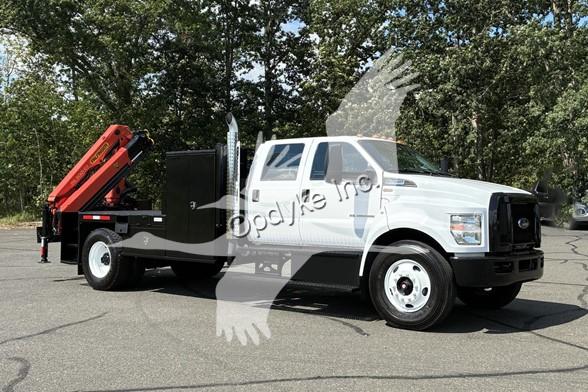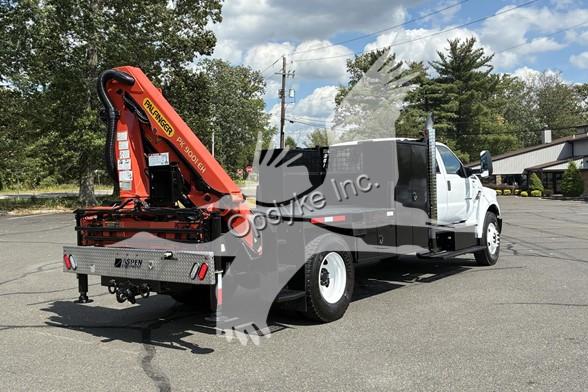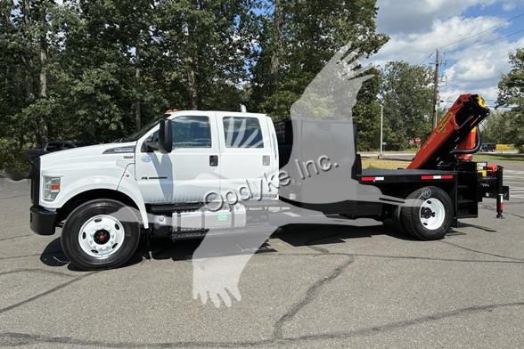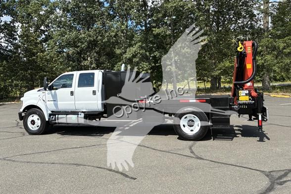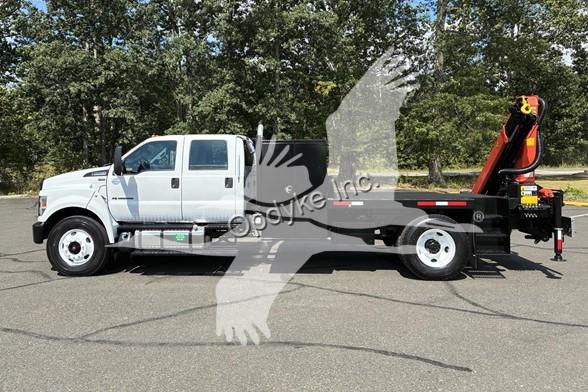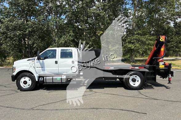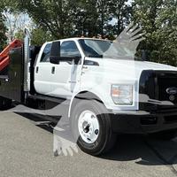 2016 FORD F650 C/CAB, 6.7L DIESEL (300 HP), 6 SP AUTOMATIC TRANSMISSION, POWER STEERING, AIR BRAKES, AIR CONDITIONING, POWER WINDOWS/LOCKS, TIRES: 11R22.5, 33K GVW (12K FRONT, 21K REAR). PALFINGER PK9001-EH KNUCKLEBOOM, PICKS 4850 LB SIDE REACH, PICKS 1720 LB AT 32' MAX SIDE REACH, 3 HYD EXT ON OUTER BOOM, LMI SYSTEM, RADIO REMOTE CONTROLS, 2 HYD OUT + DOWN OUTRIGGERS, 13' STEEL FLAT/UTILITY.